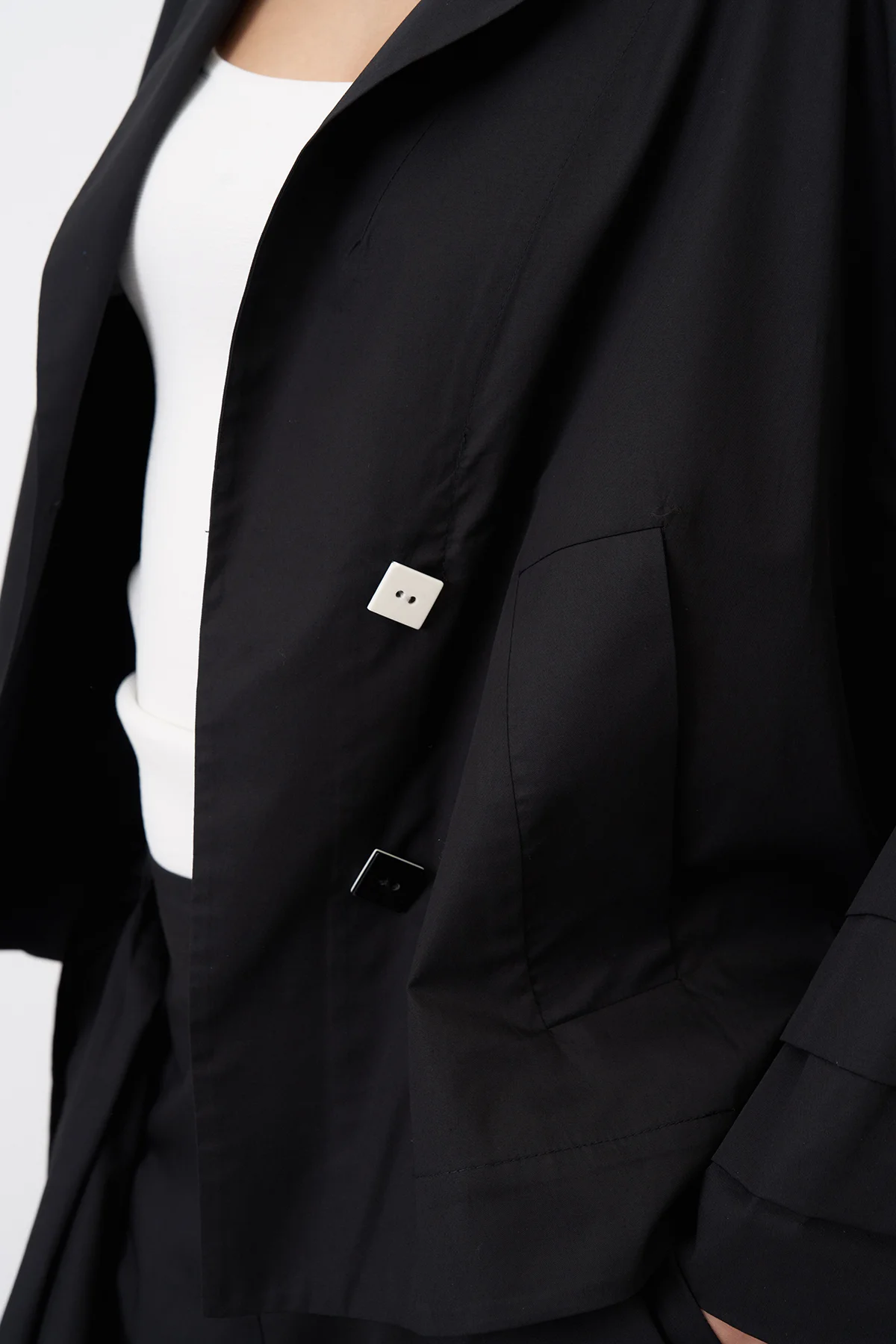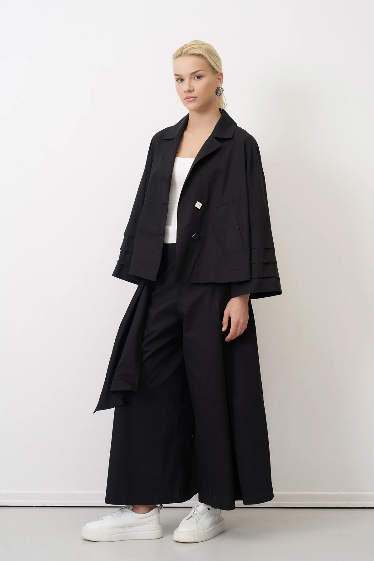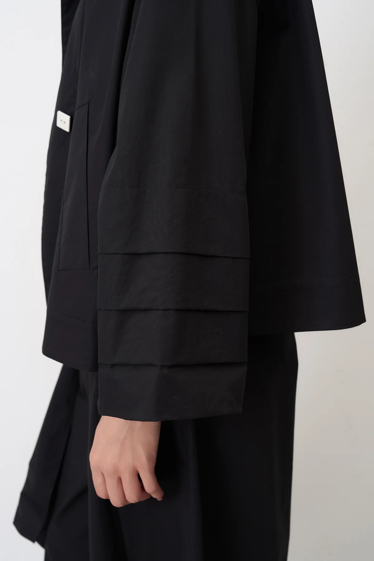 Siyah Kol Ucu Katlama Detaylı Kısa Souda Ceket