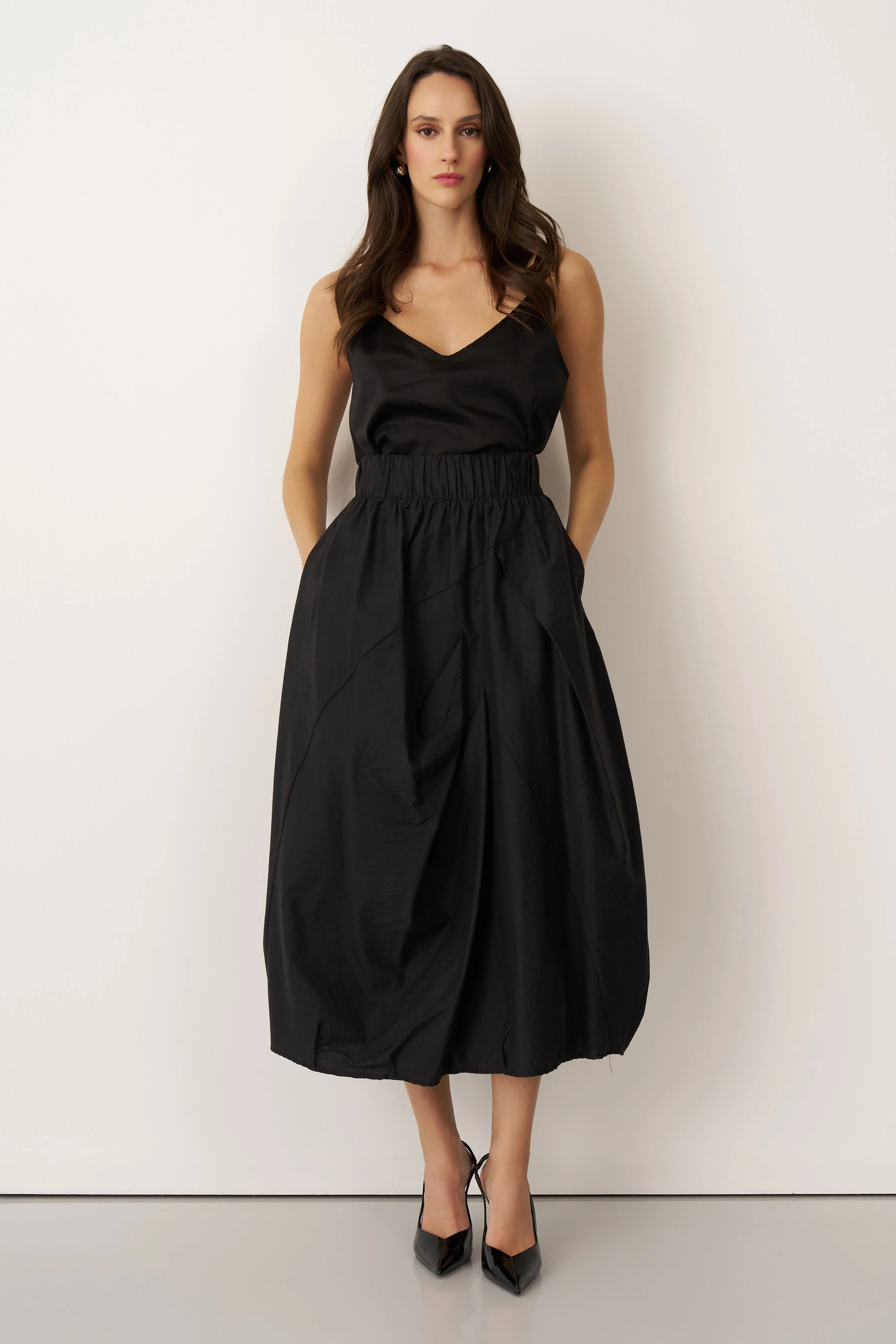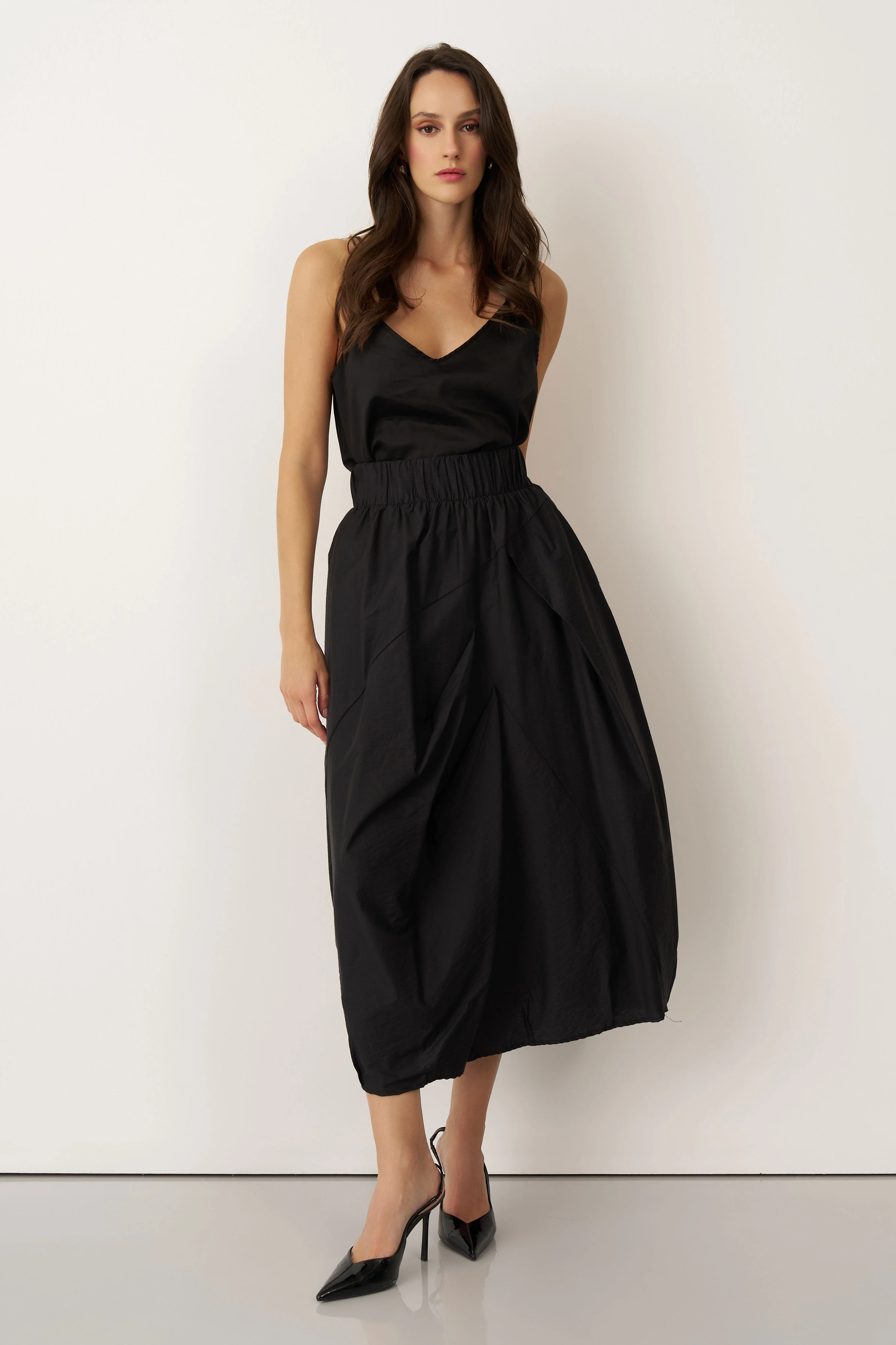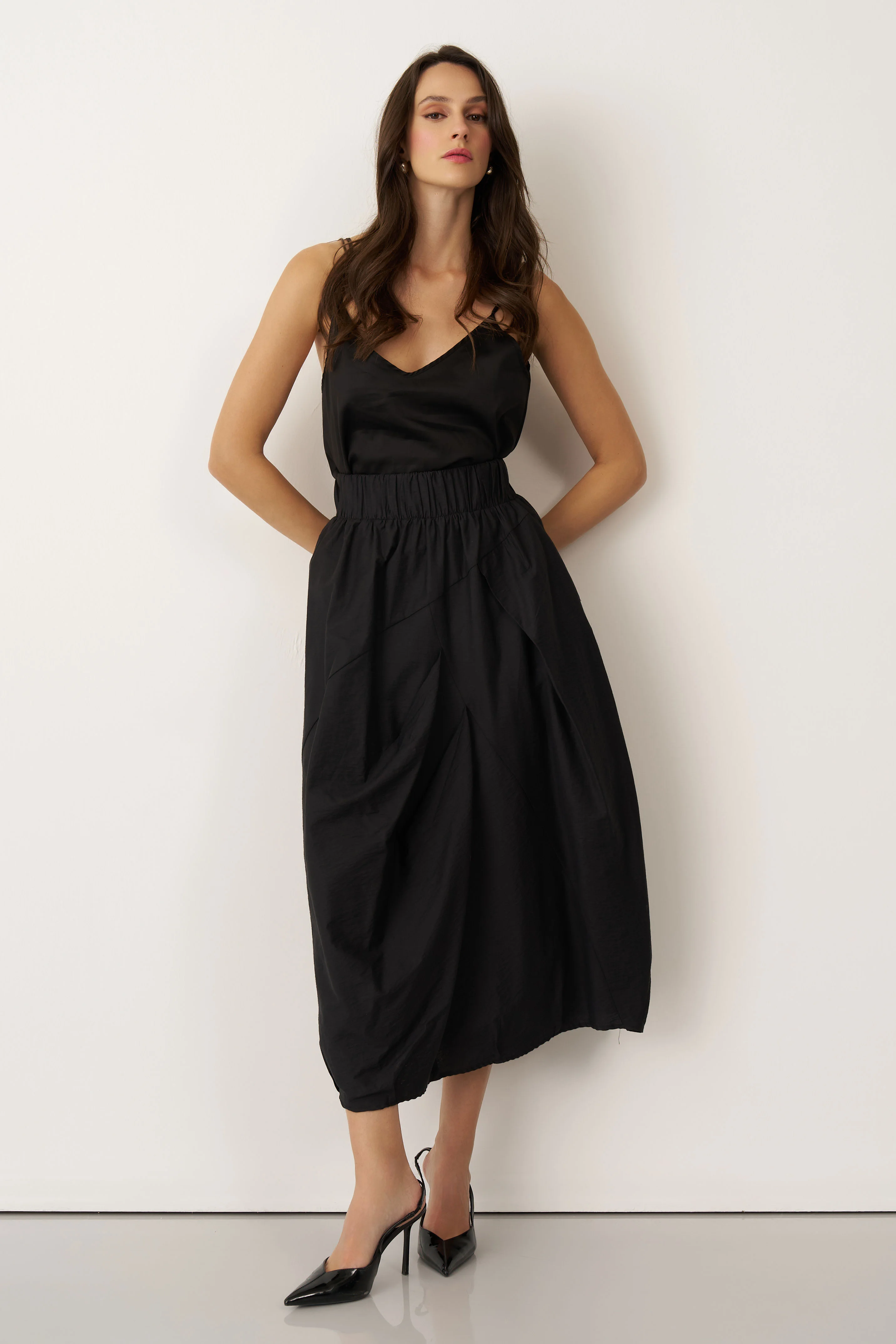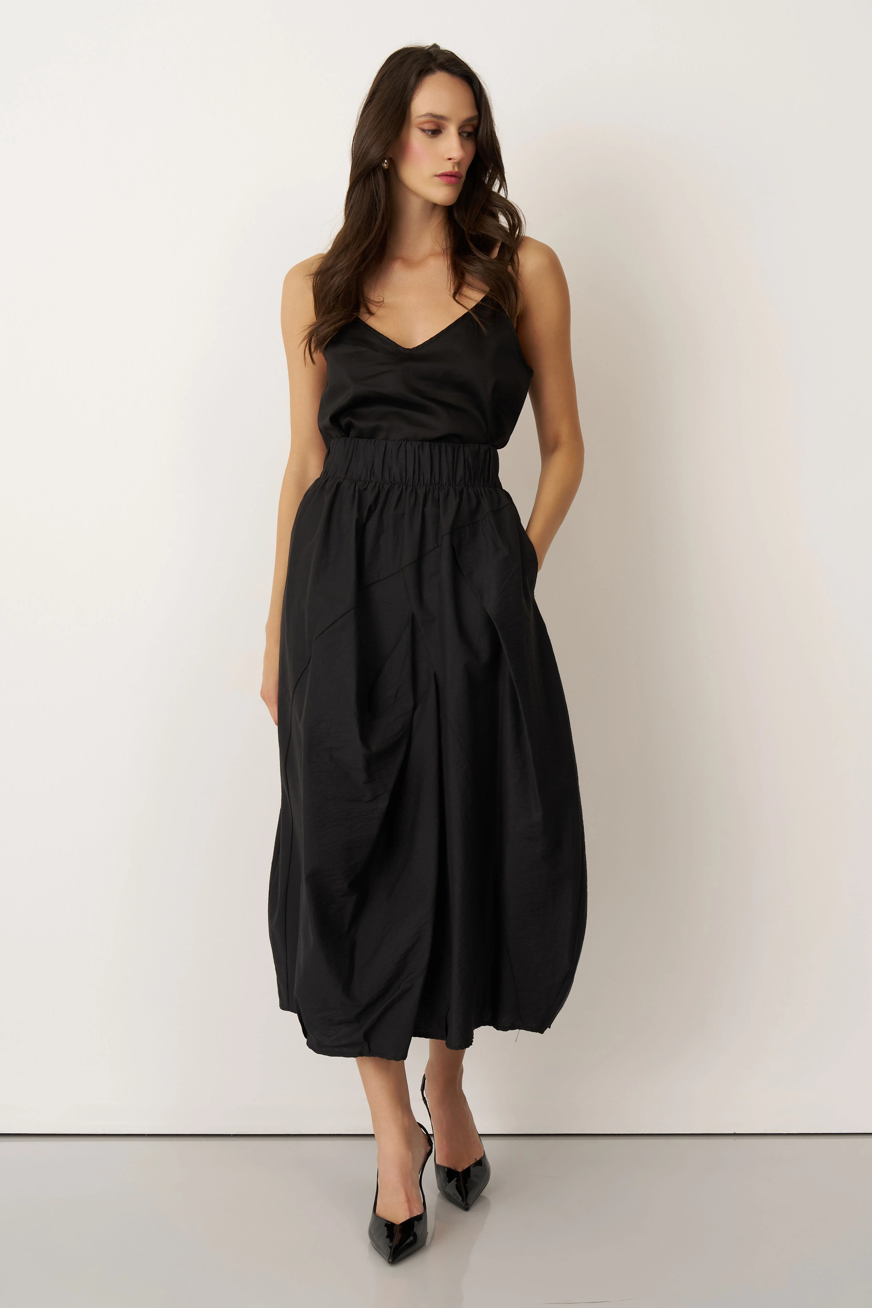 Siyah Lastikli Bel Balon Form Koufi Etek