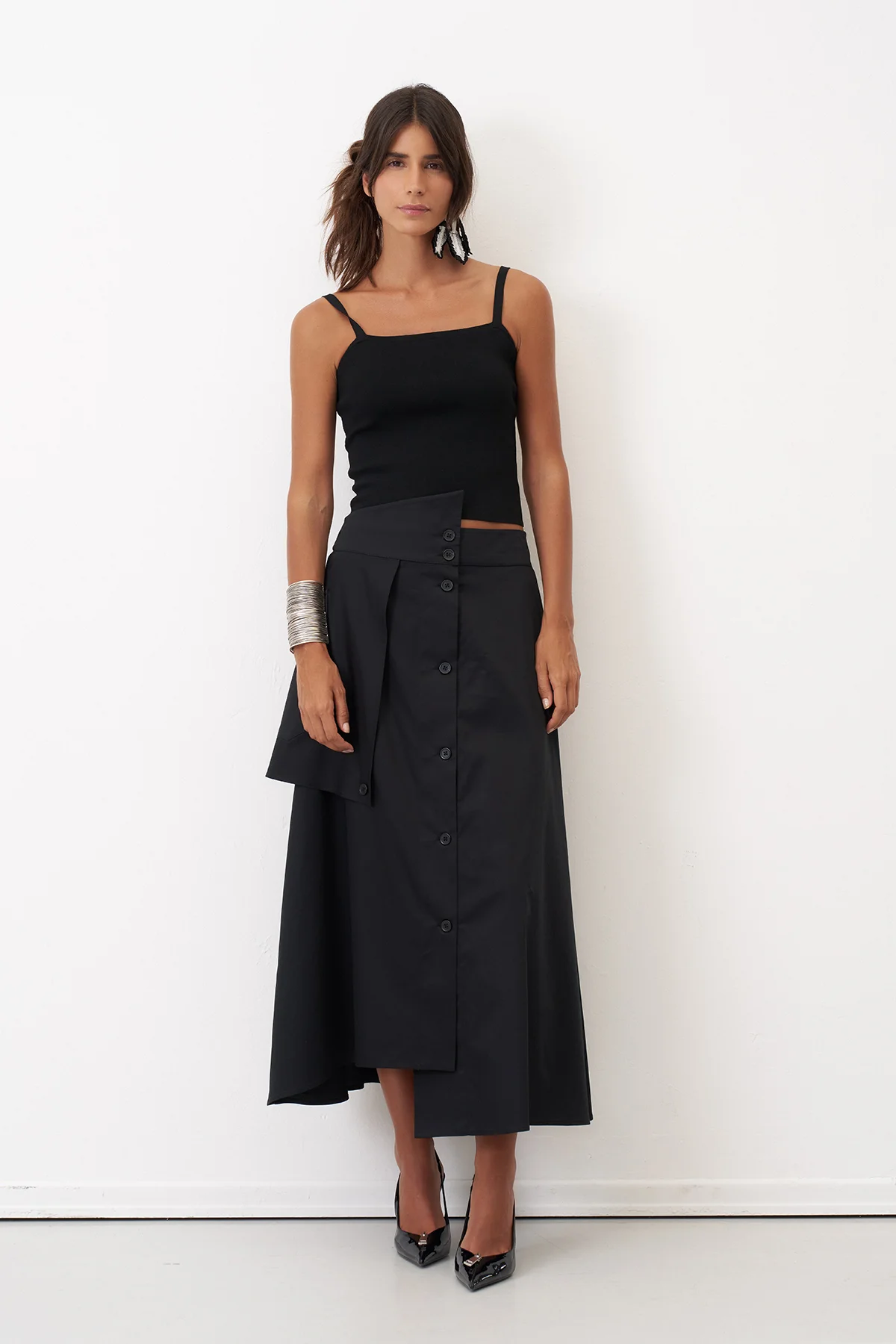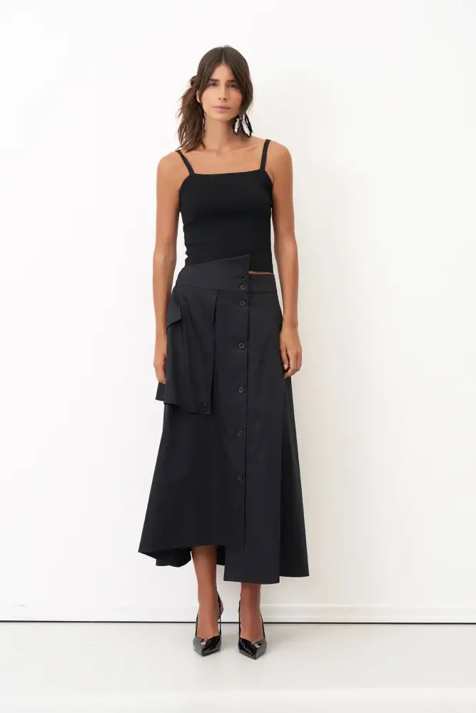 Siyah Önü Düğmeli Büyük Cepli Daskalio Etek