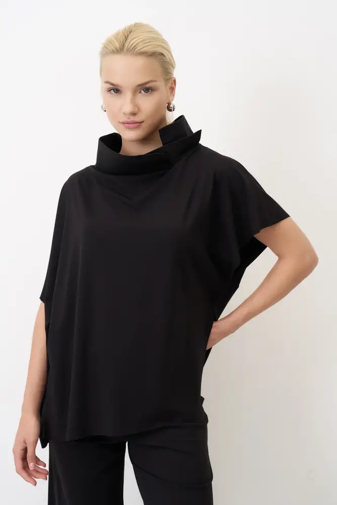 Siyah Tafta Dik Yakalı Kokkino Bluz