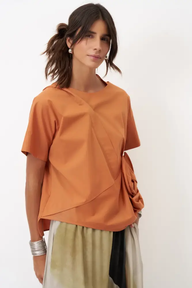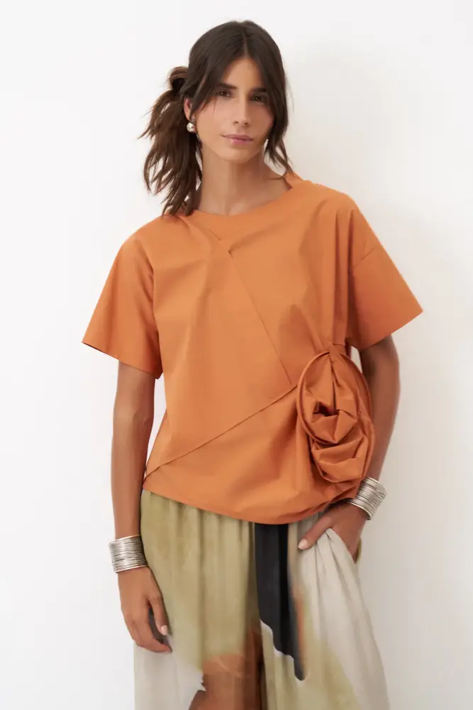 Taba Yanı Çiçek Formlu Proti Bluz