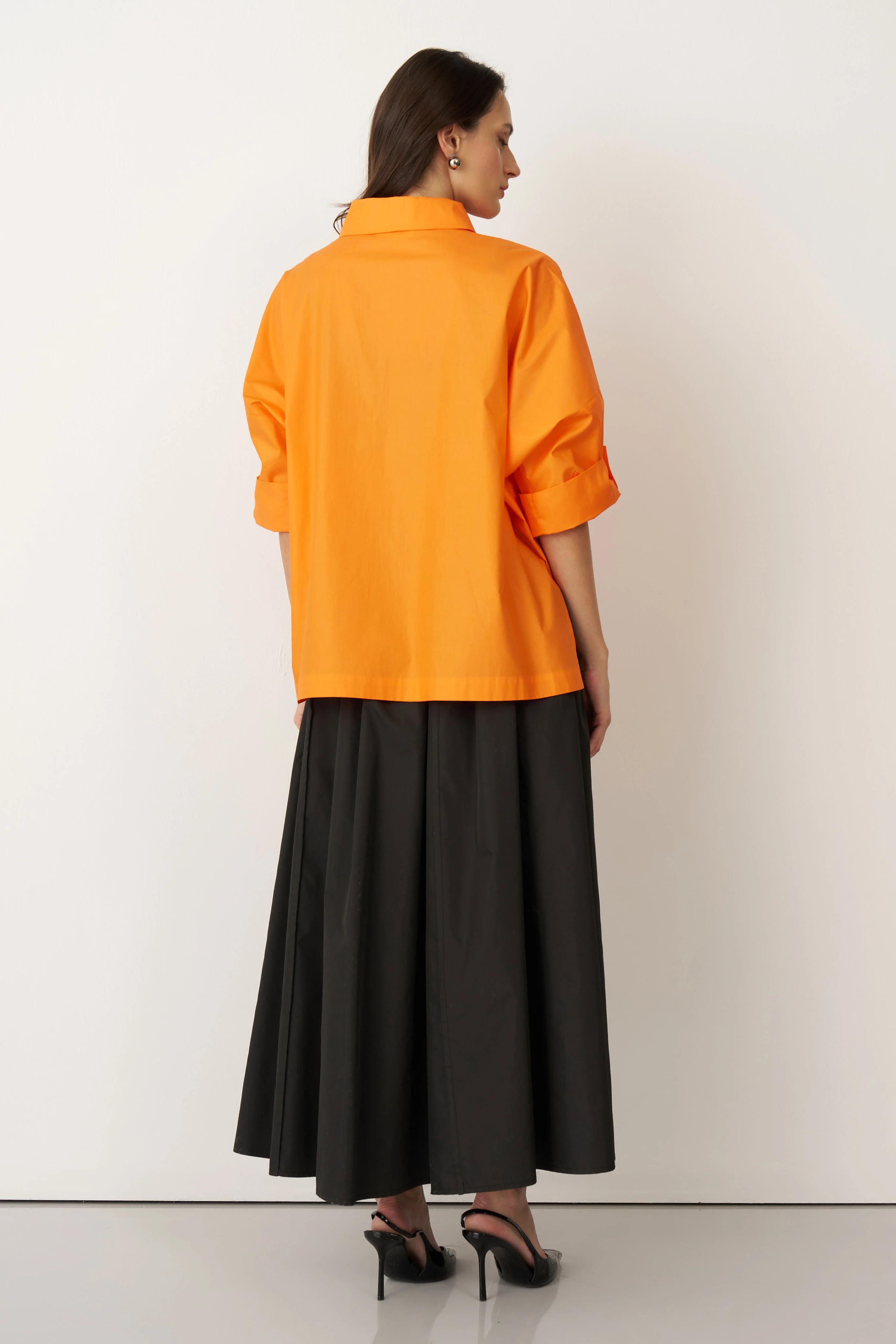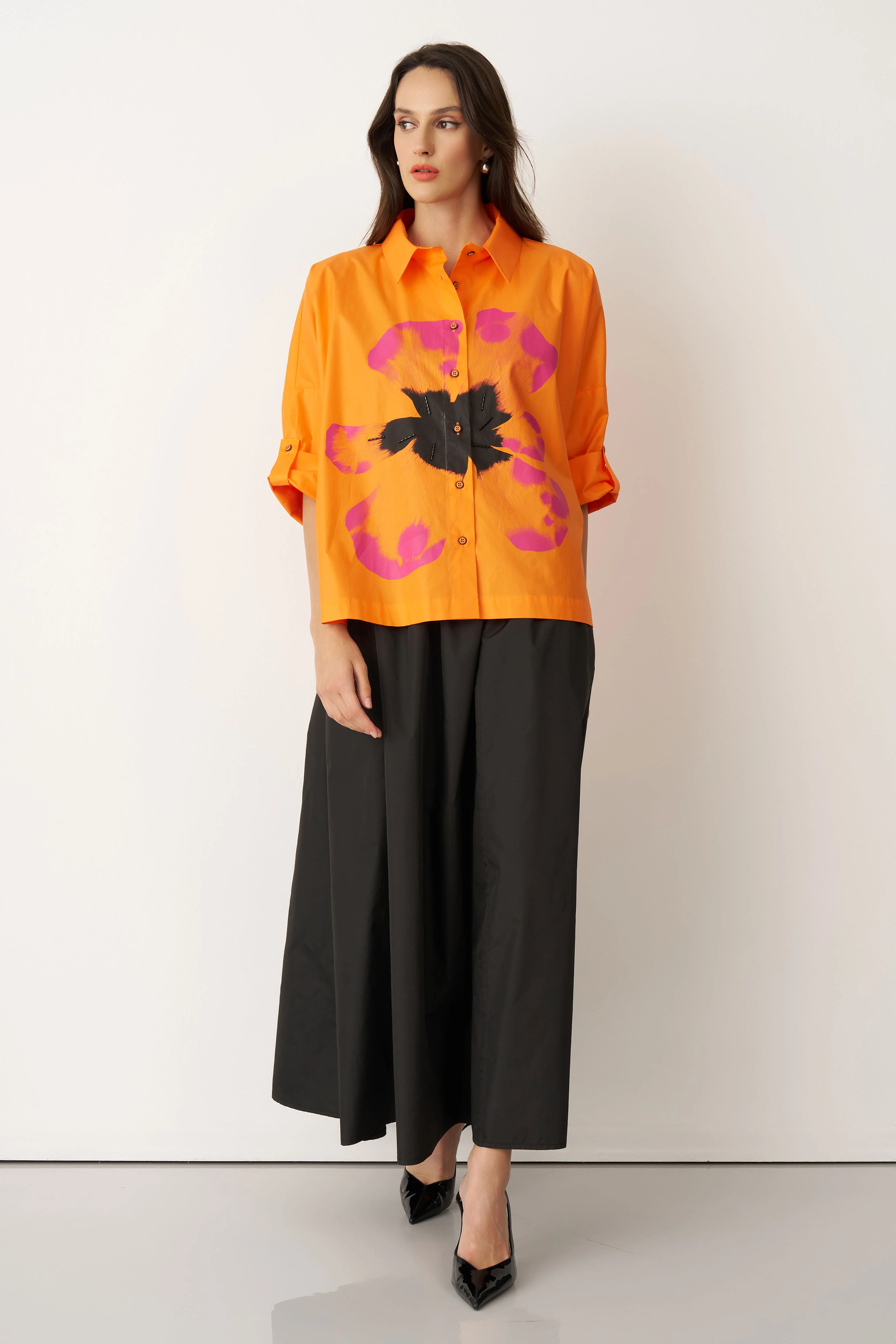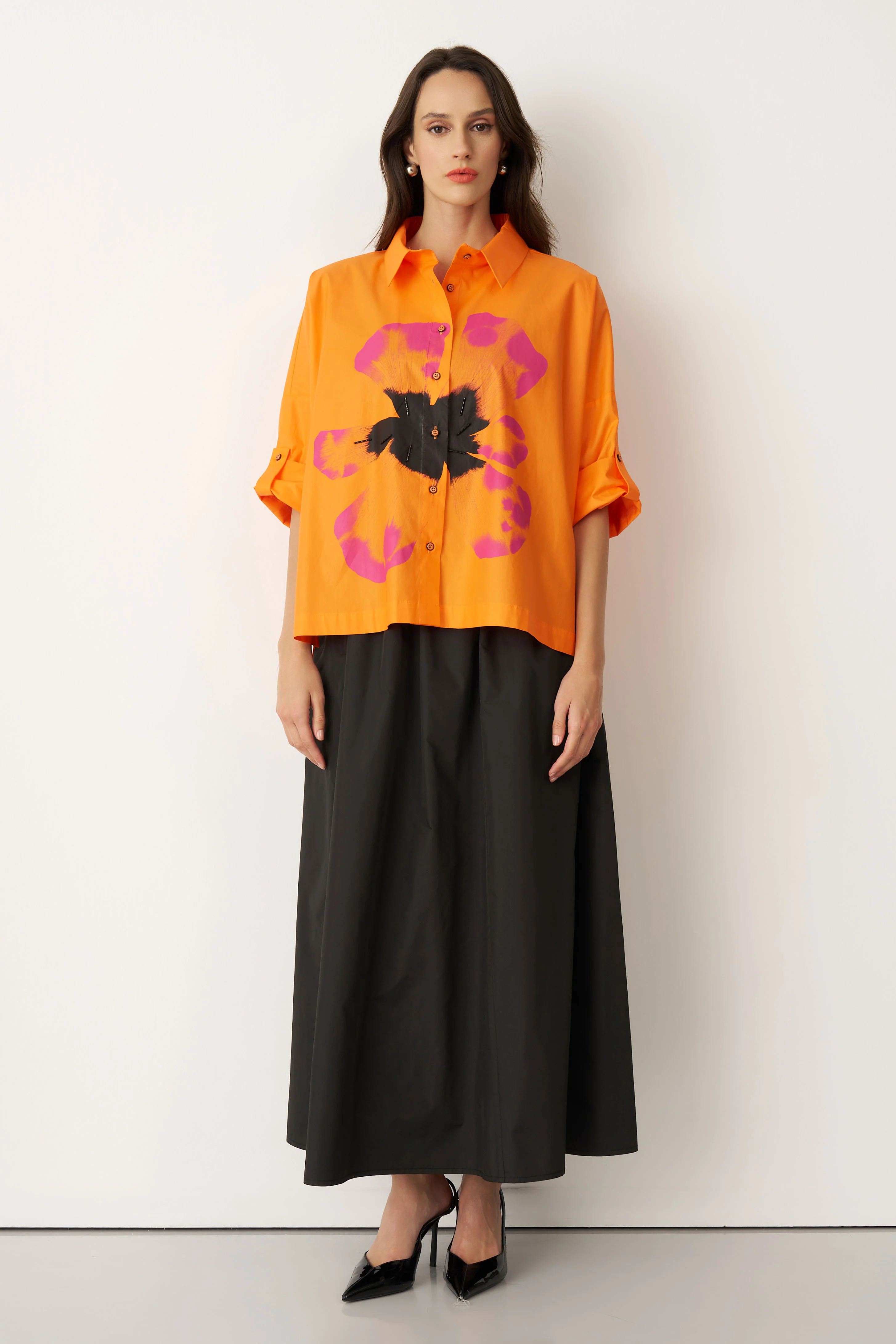 Turuncu Önü Büyük Çiçek Baskılı Gavdos Gömlek