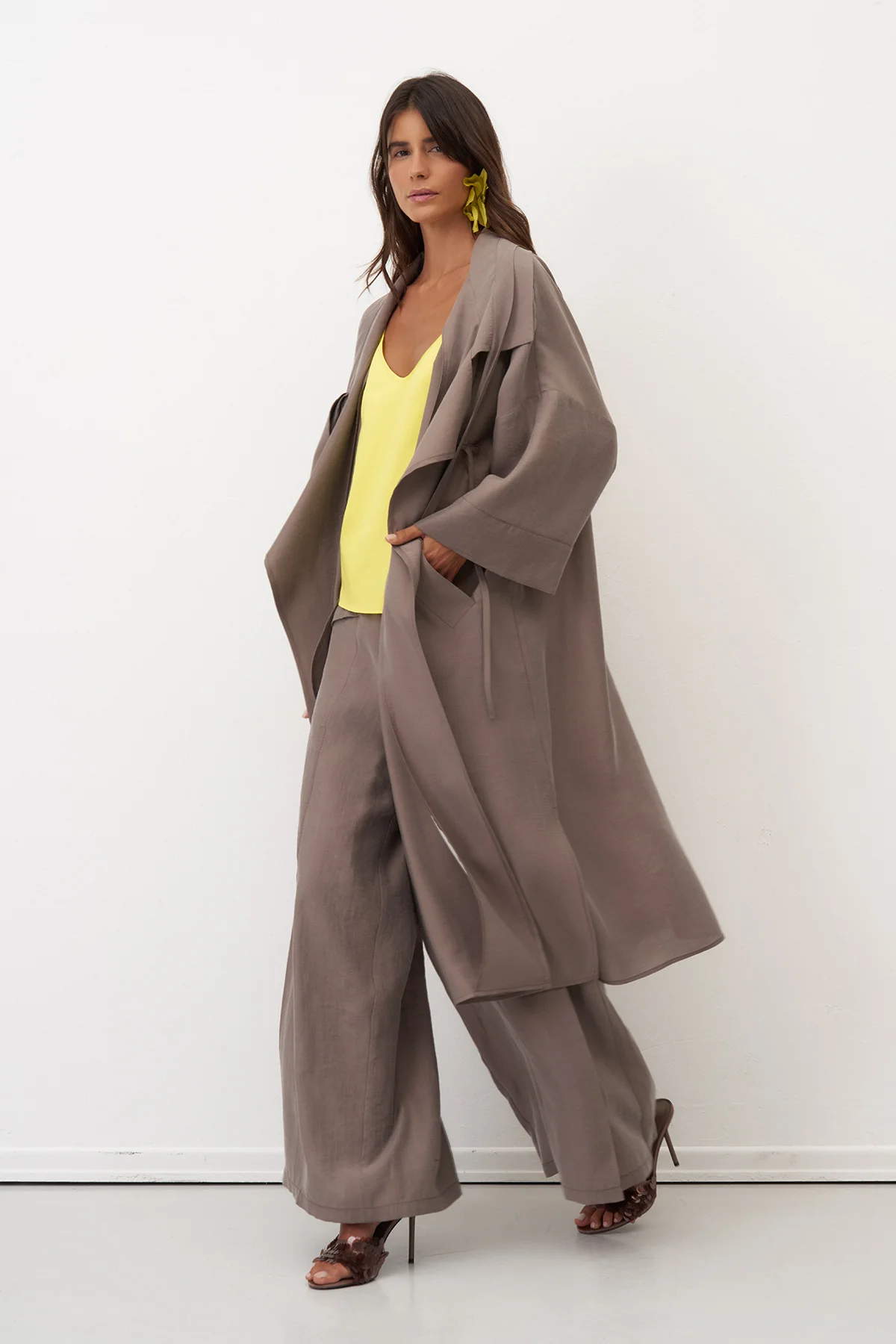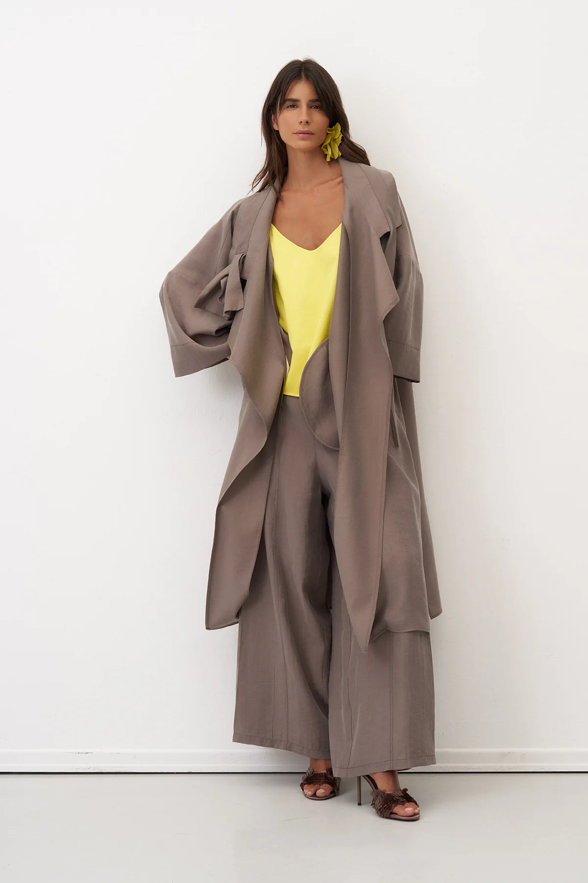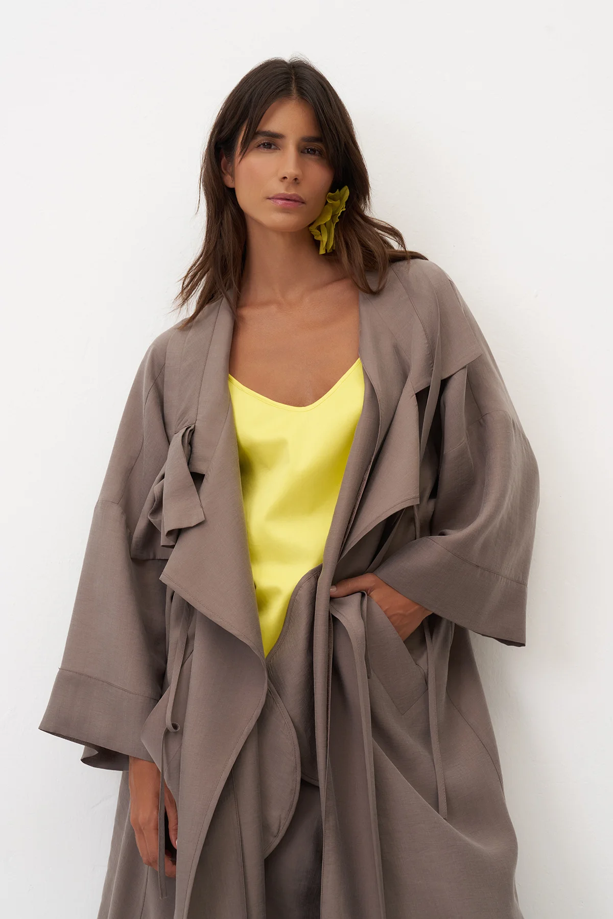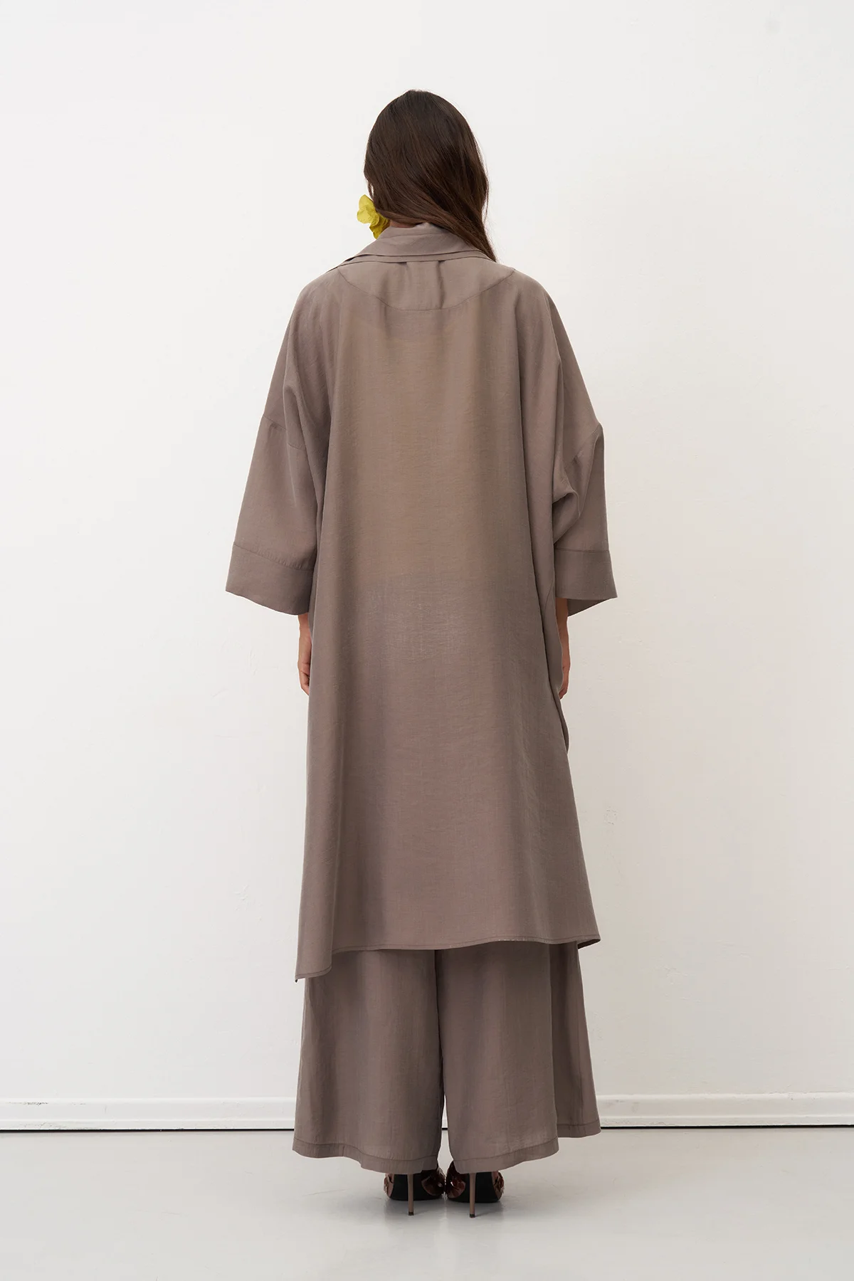 Sarı Yırtmaçlı Rahat Kesim Uzun Nisida Gömlek