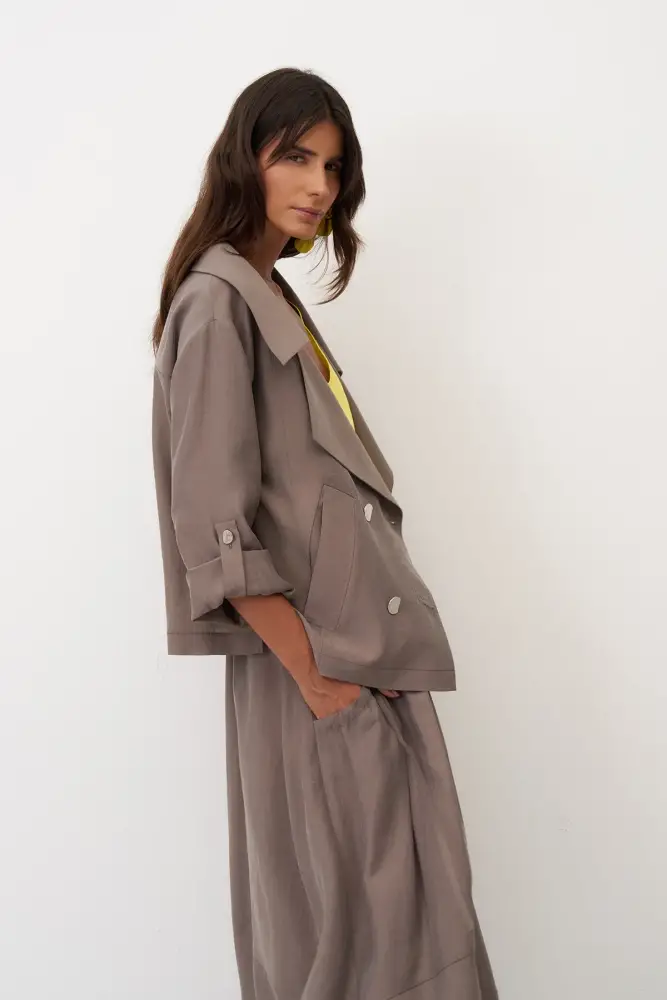 Vizon Kruvaze Yaka Dört Düğmeli Limnos Ceket
