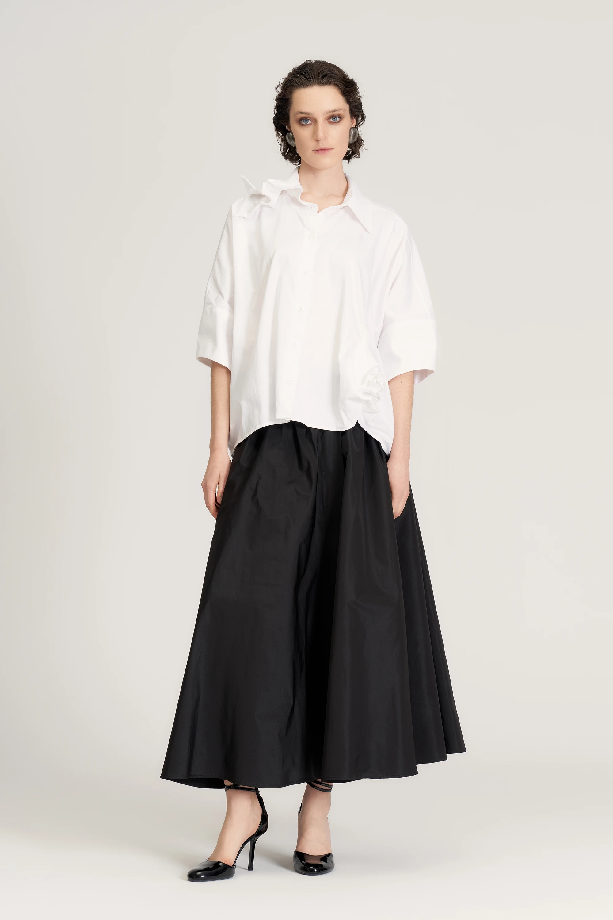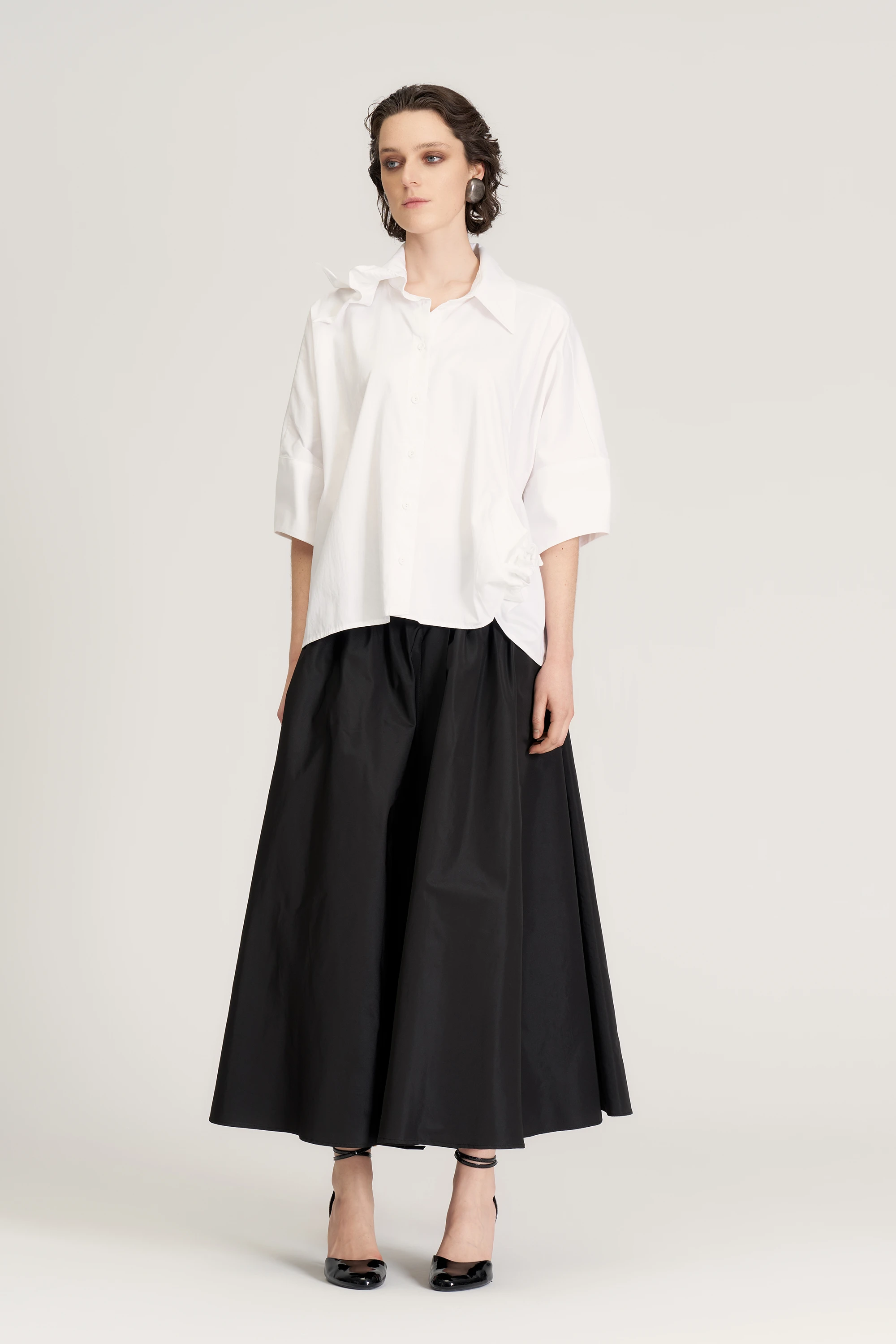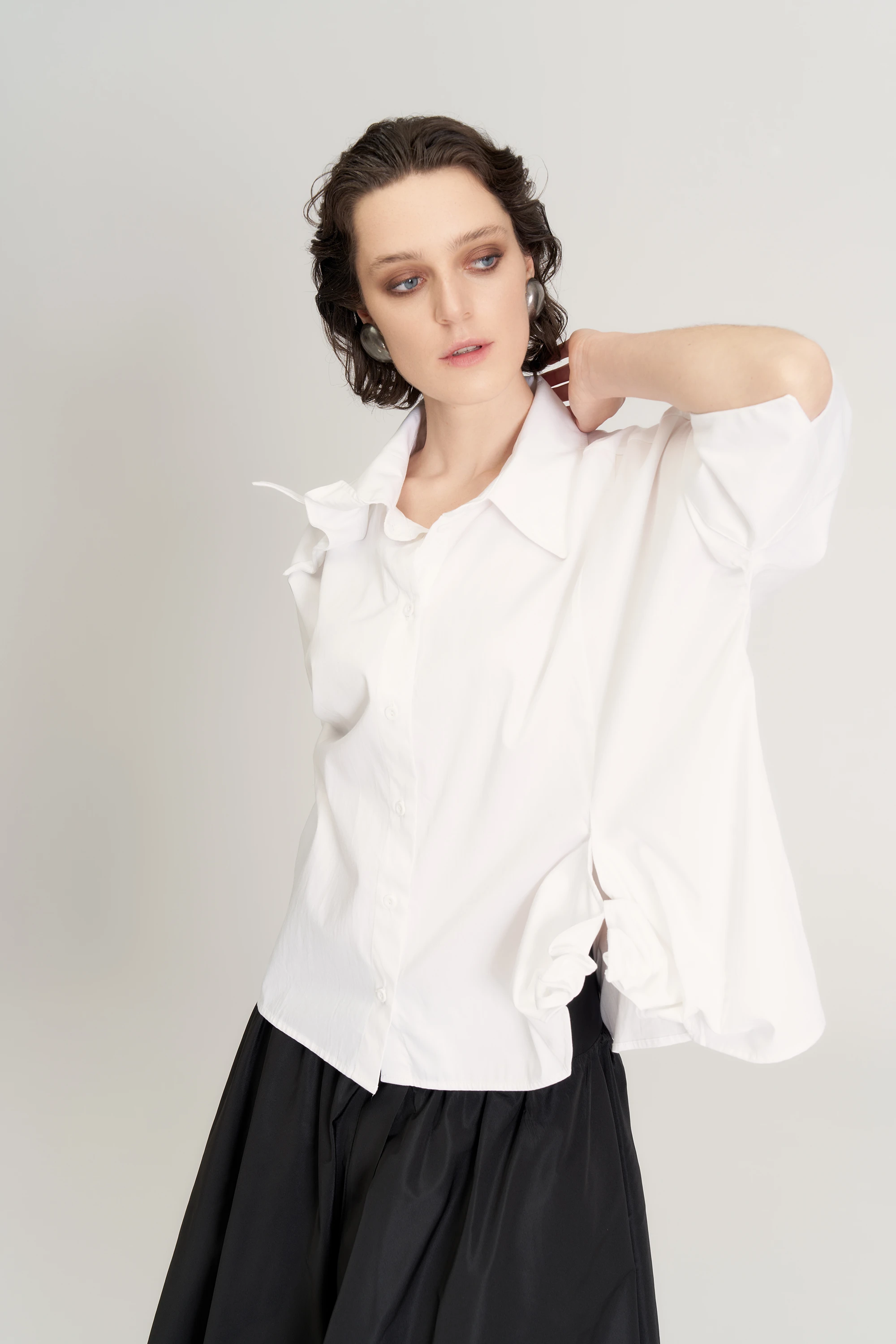 Yanı Büzgü Süslü Gömlek - Beyaz