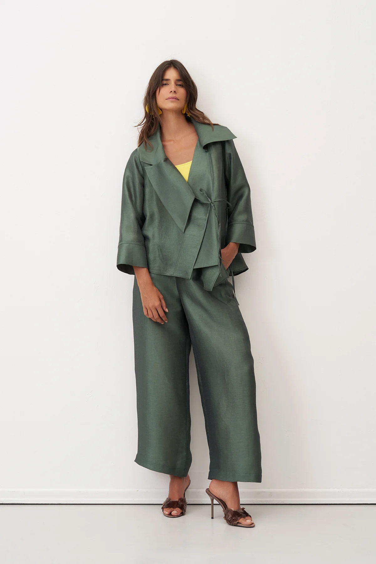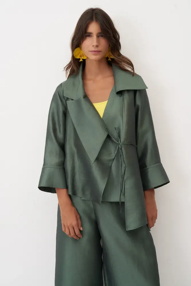 Yeşil Bağlama Detaylı Geniş Yaka Rhodes Ceket