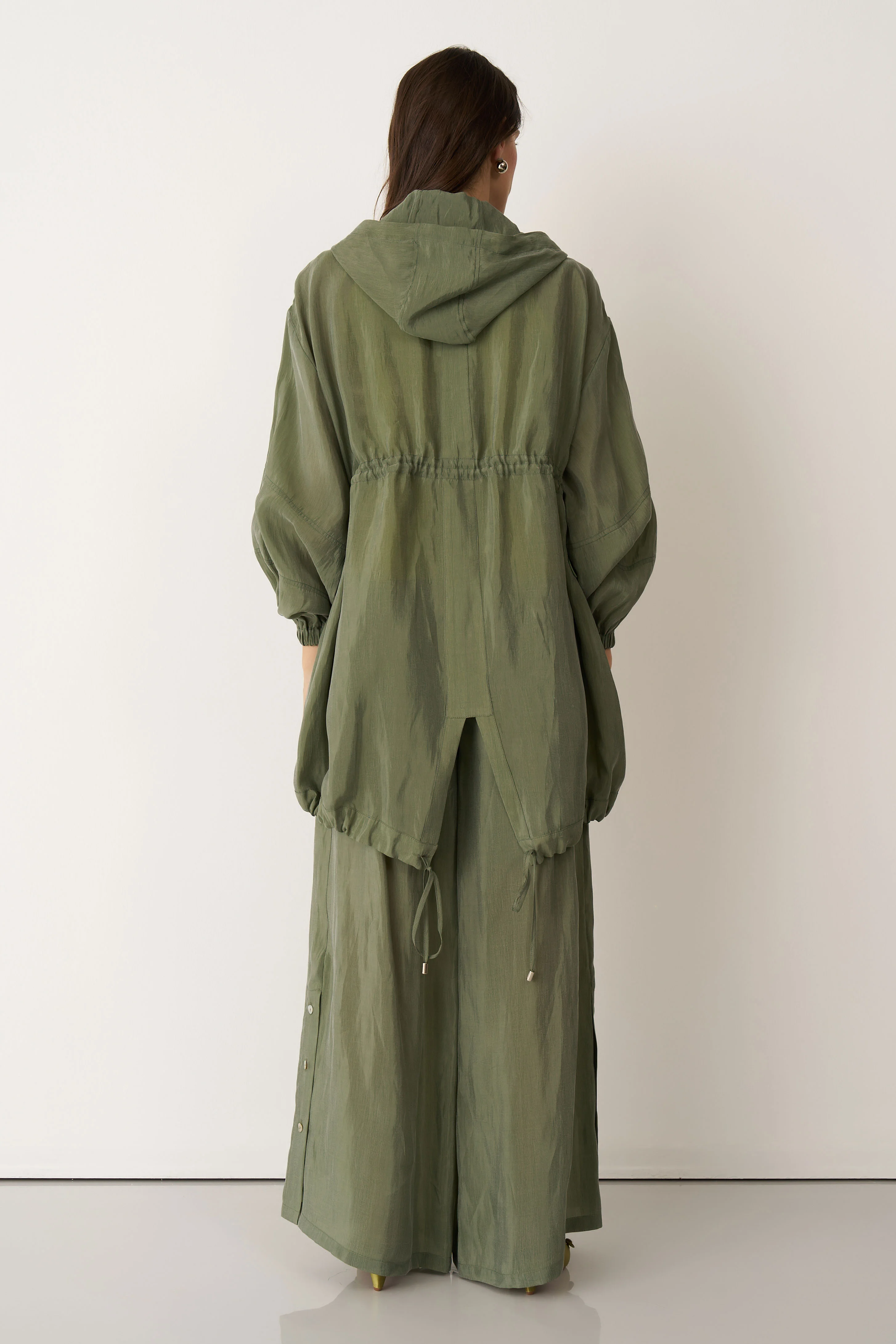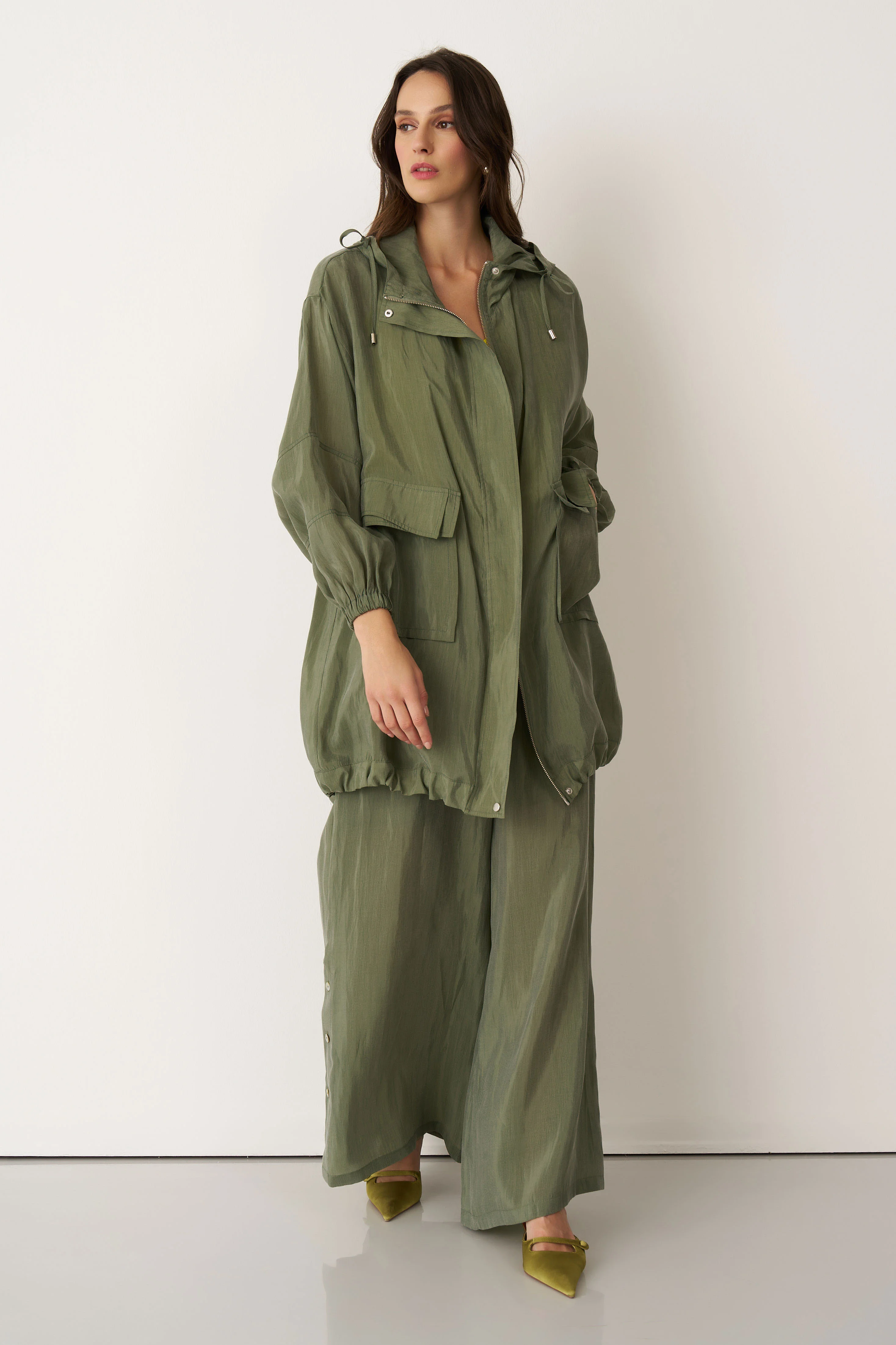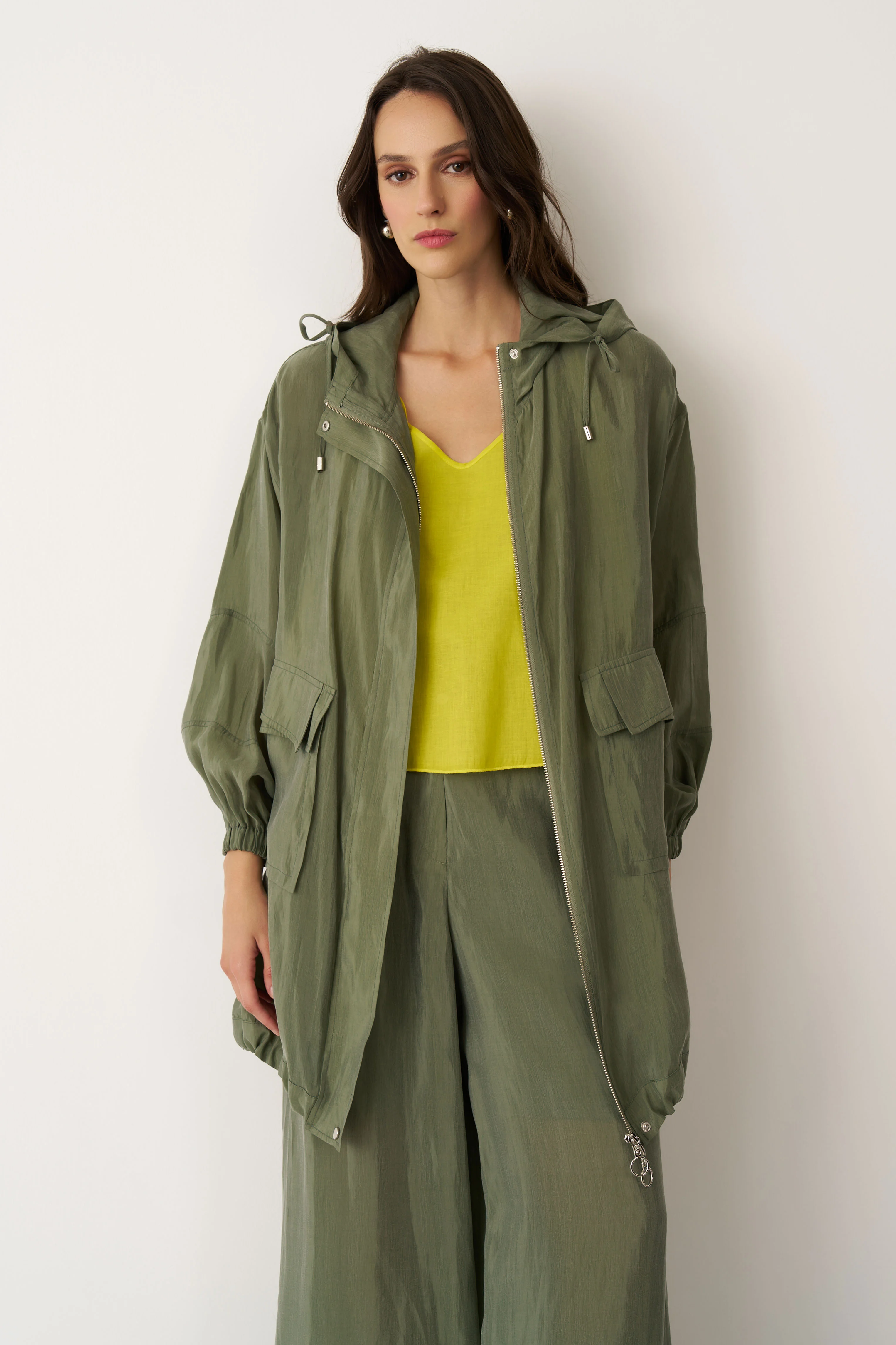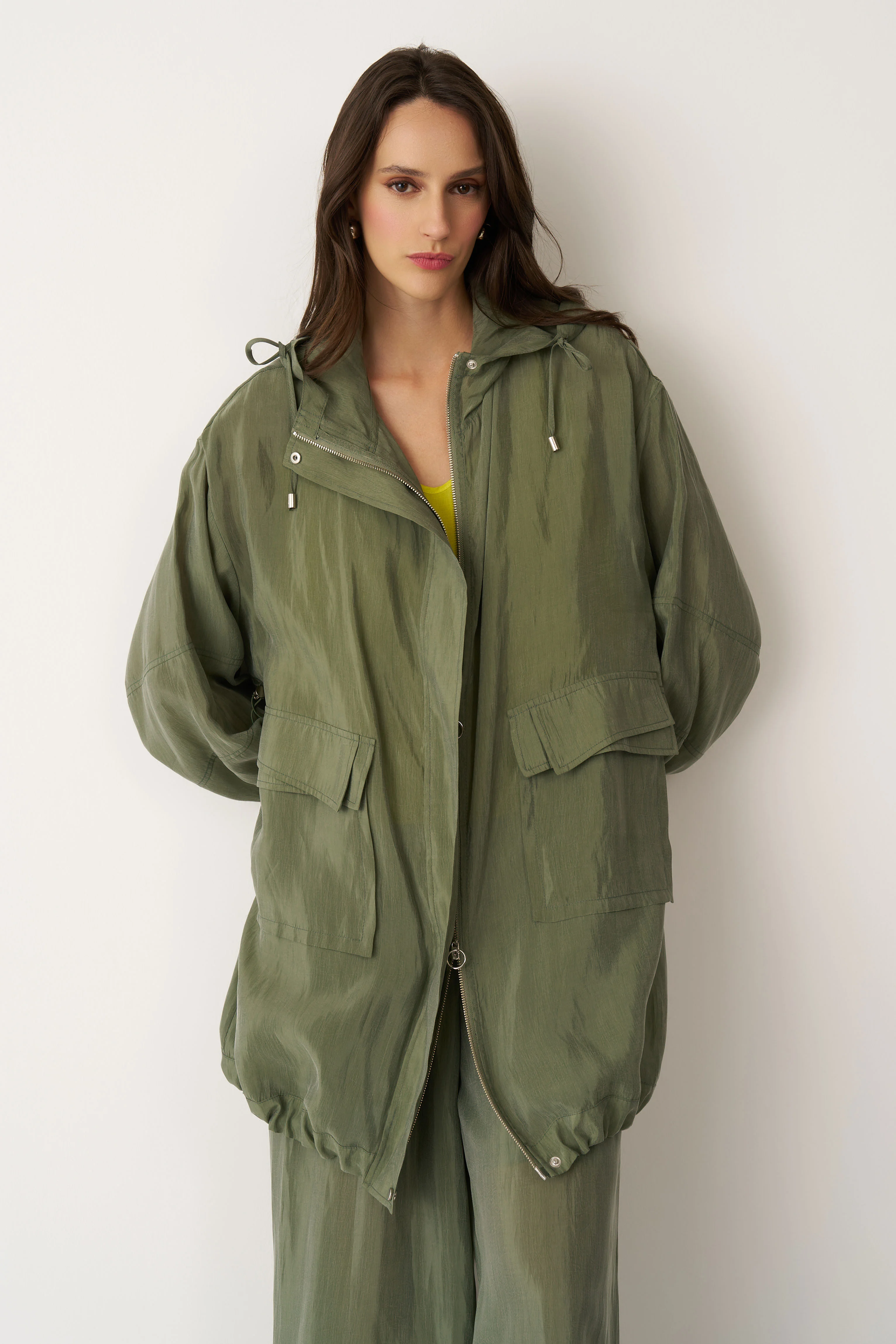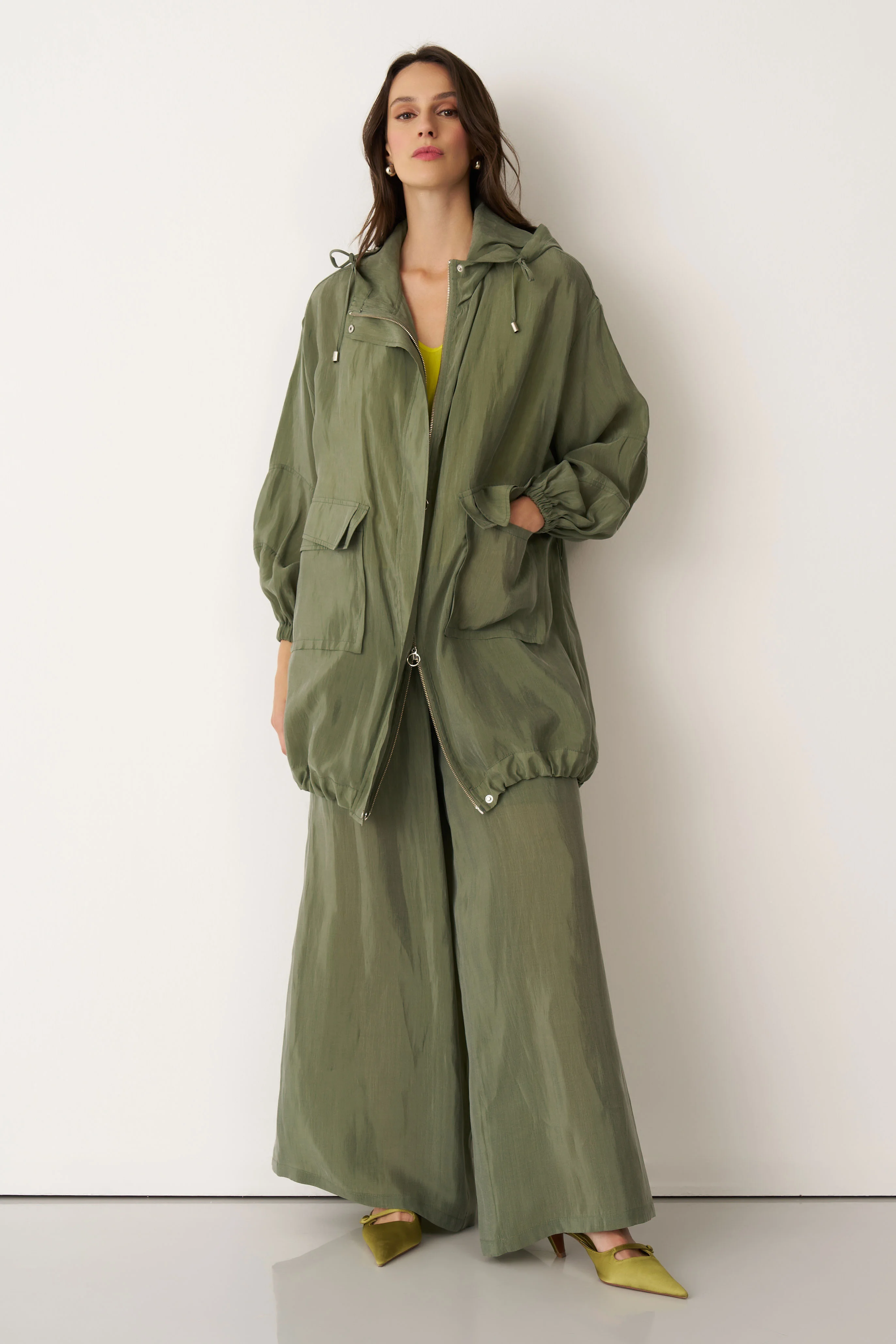 Yeşil Kapüşonlu Fermuarlı Büyük Cepli Mykonos Ceket