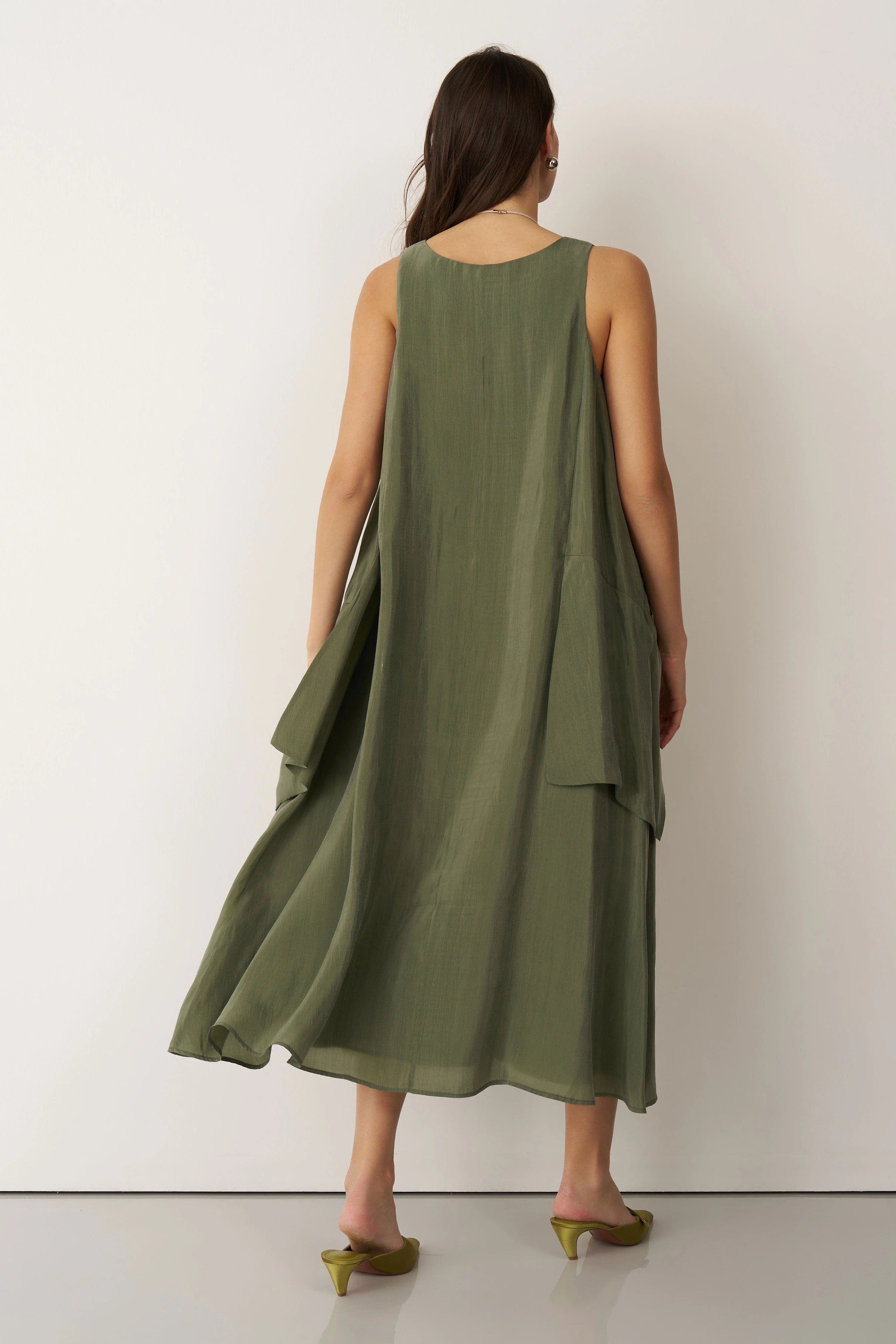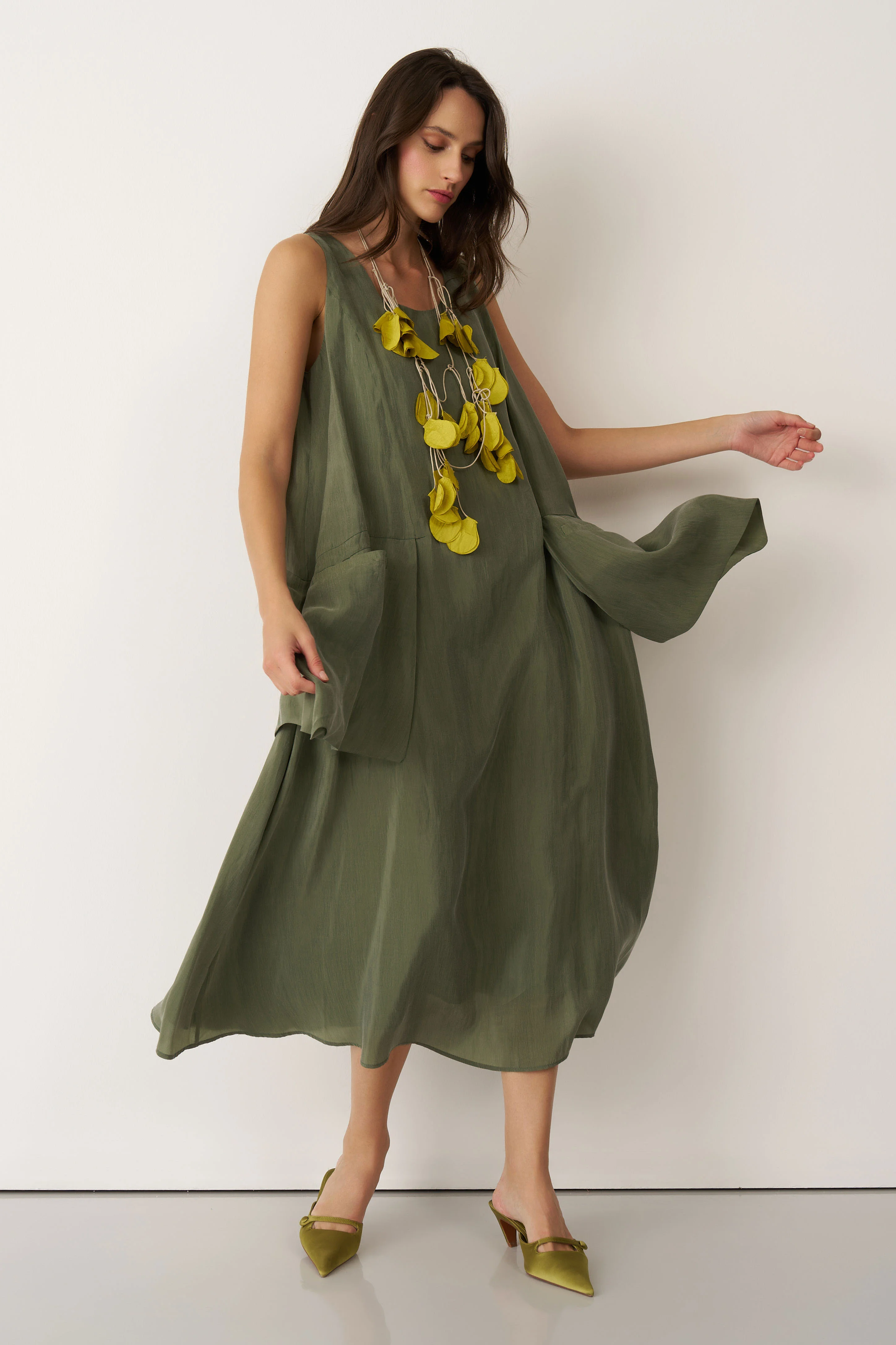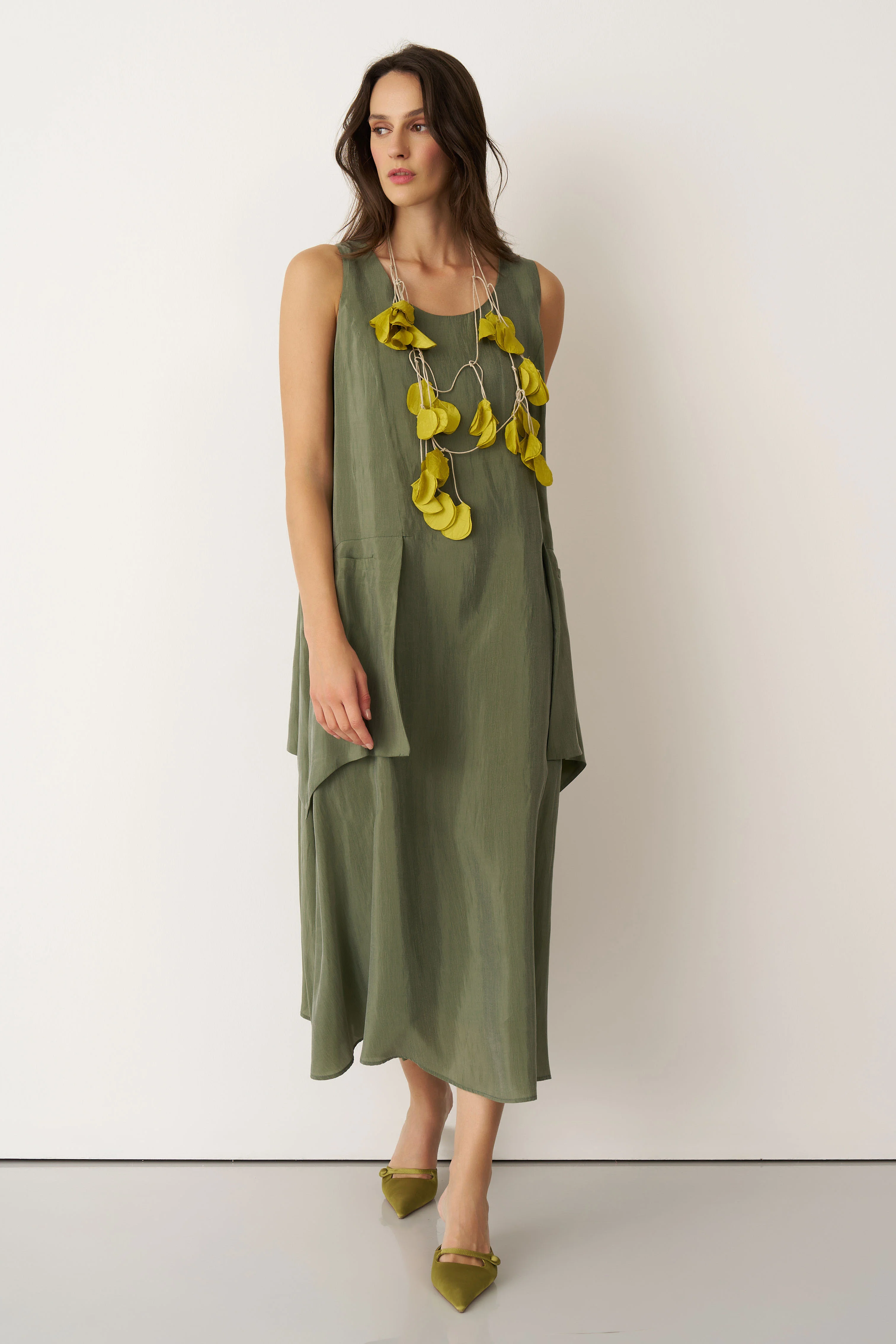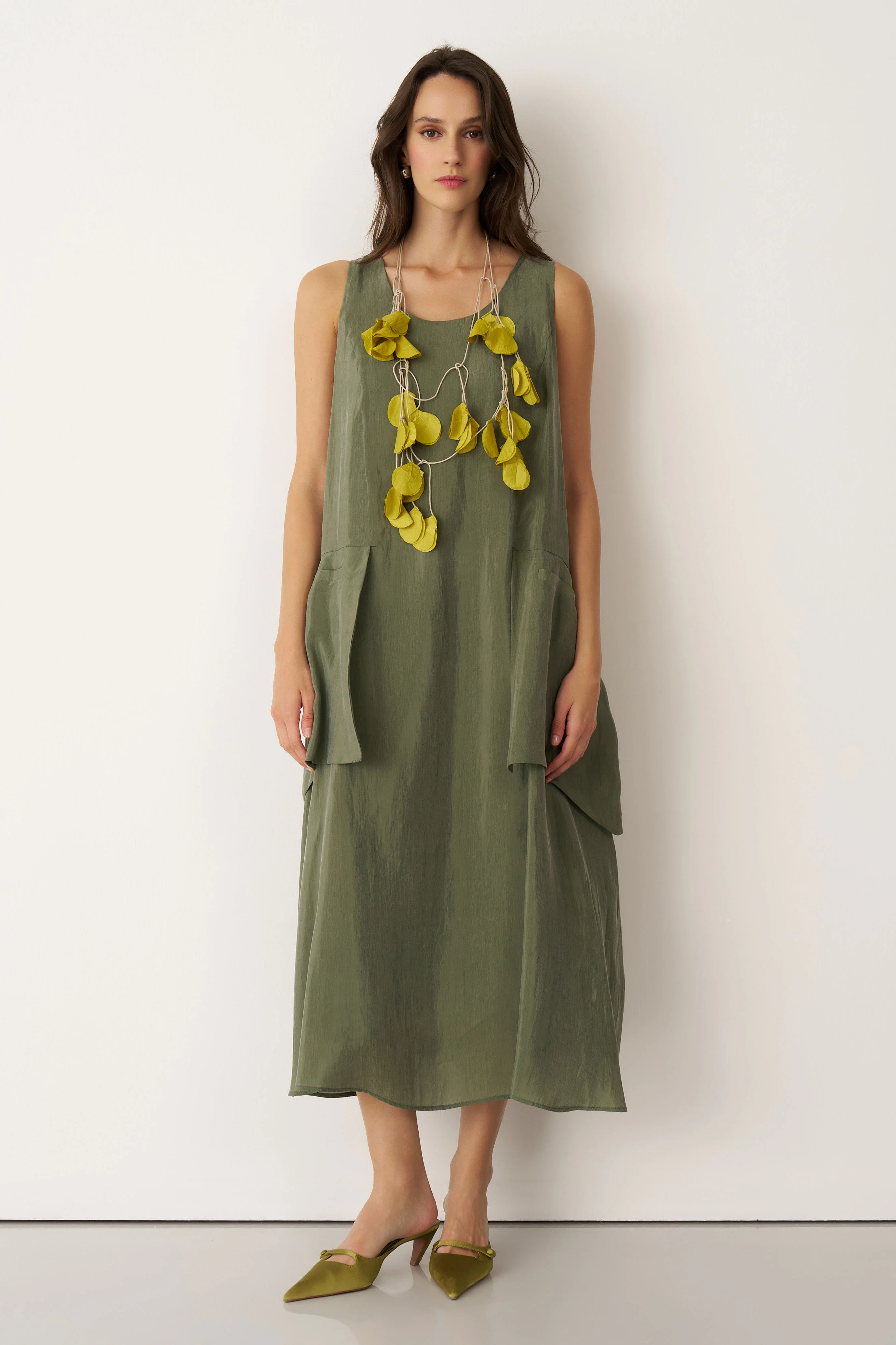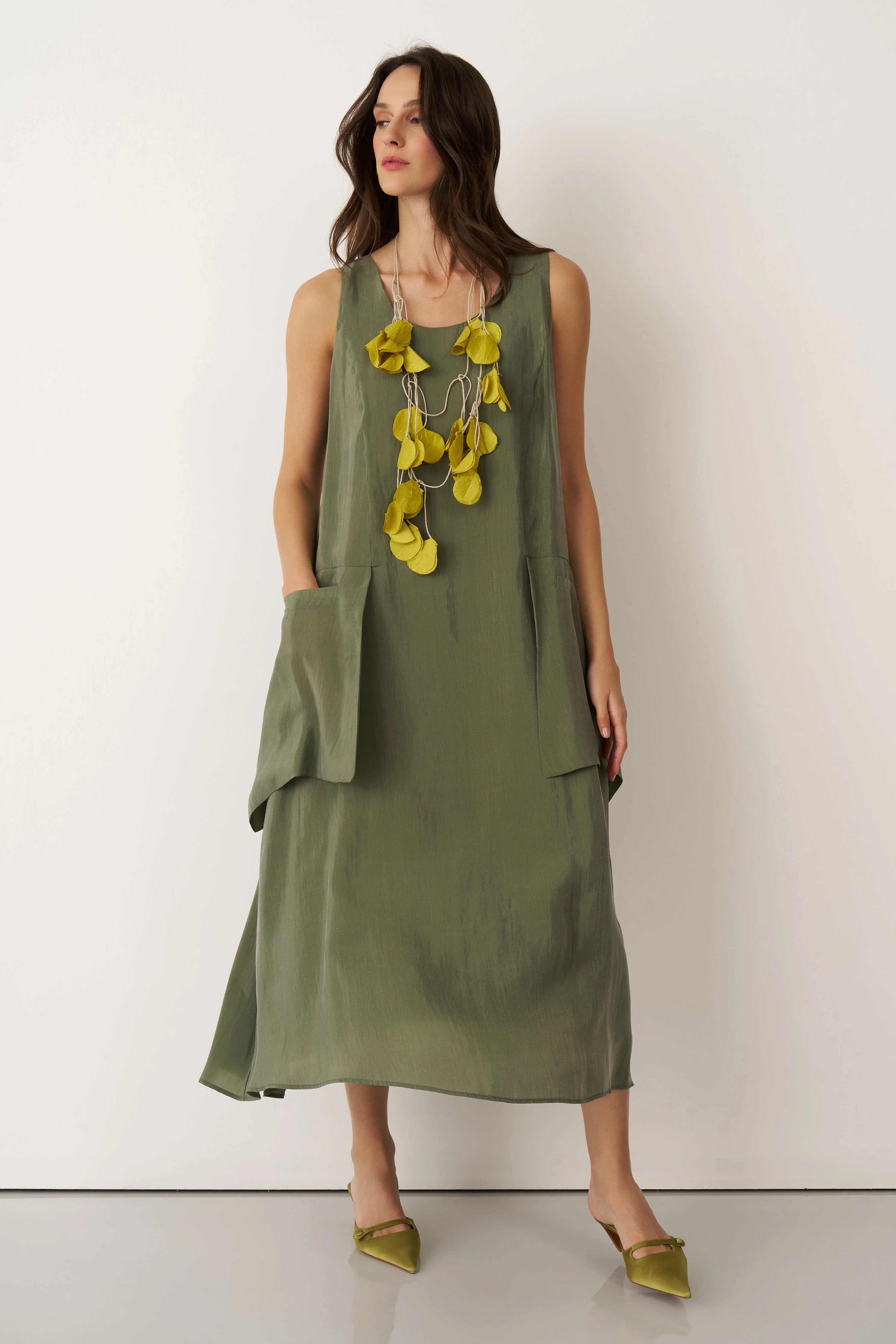 Yeşil Kolyeli Büyük Cepli Mykonos Elbise