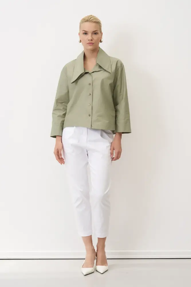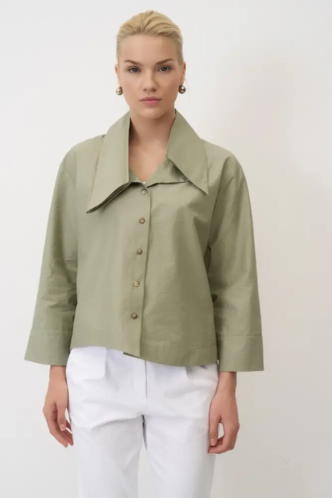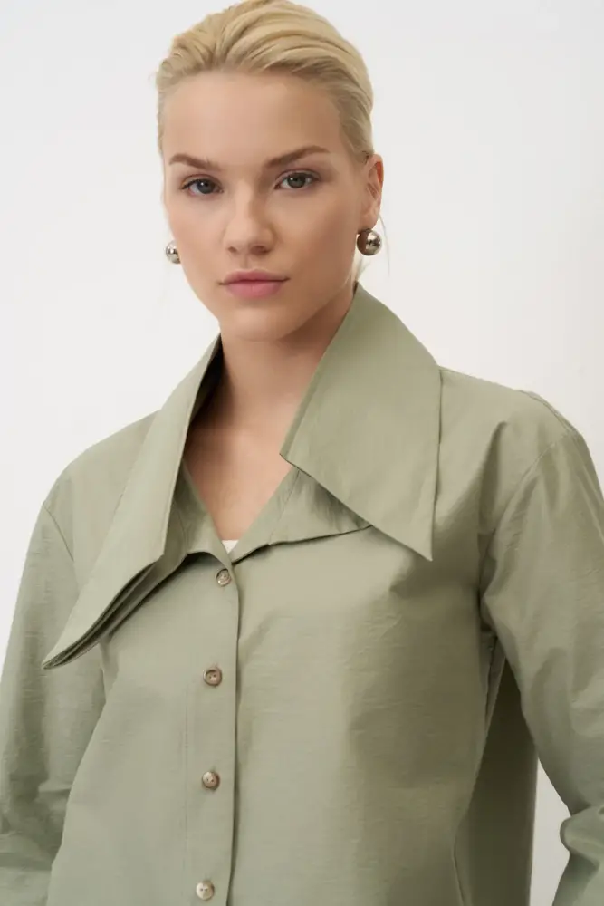 Yeşil Uzun Kol Geniş Yaka Korakas Gömlek